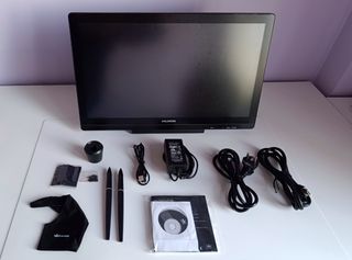 Monitor gráfico 19.5 pulgadas Full HD resolución 5080LPI (1920*1080) Se incluyen todos los cables, guante, 2 lápices recargables, soporte para lápiz y 18 puntas de recambio nuevas. La vendo porque ya no la uso por falta de tiempo. El único problema es que está sin su caja original.