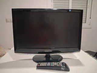 Monitor samsung negro, cuenta con mando (pilas no incluidas) ajustable inclinacion, contiene cable de alimentacion, el unico incoveniente esque tienes que pulsar fuerte las teclas del mando pero de todas formas los botones del propio monitor funcionan a la perfeccion, cuenta con 2 puertos de HDMI, conector para ordenador, clavija para auriculares JAC y las medidas son 45cm de largo y 29 cm de alto