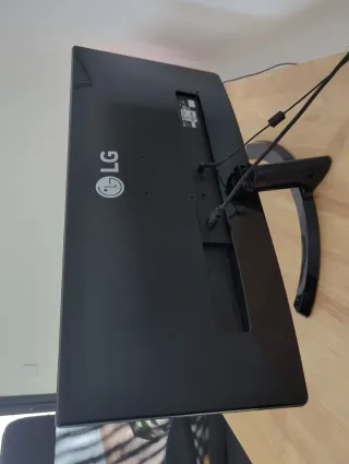 Monitor LG en color negro. - Pantalla IPS. - Diseño elegante. - Tiene un fallito que de vez en cuando, al encenderse se escucha pero no se ve. Al rato se pasa y se ve perfectamente. (Creo que por humedad ocurre) - Sonido muy bueno - Mando incluido