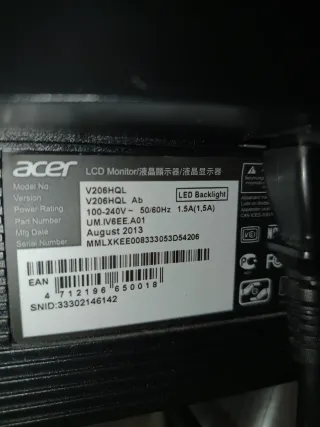 Monitor Acer en buen estado. - Pantalla en perfecto estado. - Listo para usar.