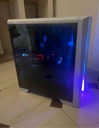 Ordenador gaming en muy buen estado. Diseño moderno con iluminación RGB y panel lateral de cristal templado. Placa base: Asus Prime B460M-A CPU: Intel i3-10100 Almacenamiento: SSD M.2 256GB + HDD 1TB Memoria: 16GB RAM DDR4 Gráfica: Nvidia GTX 1050ti 4GB Caja: Nfortec Eris Fuente: Unika 700W Aunque funciona muy bien con juegos que no requieren mucha máquina, se puede jugar decentemente a GTAV por ejemplo. Muy ampliable aún. Soporta CPU hasta i9-10900K. Con una gráfica potente aún puede dar mucho de si.