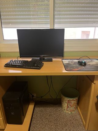Pack completo para gaming, ideal para empezar a jugar. Funciona en perfecto estado y se entregaría formateado. Incluye: - Torre de PC negra. Especificaciones: •Tarjeta gráfica Nvidia 1050 ti. • Procesador Intel i5-7400 •2 Memorias RAM DDR4 de 8GB (16 GB en total) • 1 SSD de 500GB • Disco duro HDD de 1000GB - Monitor: Televisión Philips de 60Hz, se puede usar tanto como monitor como televisión. Con un rasguño en la esquina que no molesta para nada. - Teclado: New Skill TKL mécanico Switches rojos. Teclado Logitech de oficina. - Ratón: Trust GTX Gaming - Alfombrilla de ratón XL.