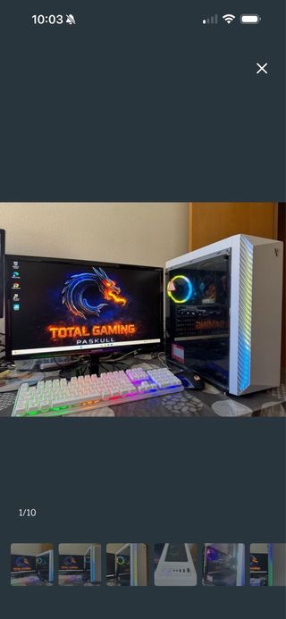 Ordenador completo con procesador Intel Core i3 de décima generación y tarjeta gráfica NVIDIA GeForce GTX 1050 Ti. Ideal para gaming y tareas exigentes. Tiene 4 años, pero puedes jugar juegos como fortnite, cs2, gta V... A 60 o más FPS. - Procesador: Intel Core i3-10100f - Tarjeta Gráfica: NVIDIA GeForce GTX 1050 Ti - Ram: 8x2gb ddr4 - Fuente de alimentación: Gigabyte P450B - Carcasa: Nfortec blanca - Almacenamiento: Ssd de 240gb, lleva un hdd pero me lo quedo para mis archivos. Lo vendo por cambio a consola, se puede enviar video de ejemplo jugando a algún juego que tenga para demostrar los fps.