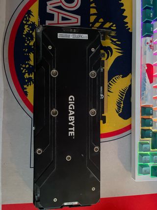 Tarjeta gráfica PC AORUS GeForce GTX 1060 de 6GB GDDR5. Es la versión más top de este modelo, con un sistema de refrigeración superior y materiales de alta calidad. Características principales: Memoria: 6GB GDDR5 (la versión potente, no la de 3GB). Refrigeración: Sistema WINDFORCE 3X (3 ventiladores) muy silenciosa y fresca. Estética: Iluminación RGB Fusion personalizable y backplate metálico de protección. Estado: Muy cuidada, usada solo para gaming muy pocas horas. Conectividad: 3x DisplayPort, 1x HDMI, 1x DVI-D. Extras: VR Ready y compatible con NVIDIA G-Sync. Solo envío si concierta la recogida el comprador y con criptos