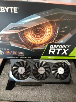 Tarjeta gráfica Gigabyte RTX 3070 Gaming OC de 8GB con iluminación RGB. En perfecto estado, único propietario, nunca ha minado y tiene muy poco uso, funciona perfectamente. - Edición OC RGB 8GB - Arquitectura NVIDIA Ampere. - Soporte para Ray Tracing y DLSS. Se hacen envios, preferiblemente trato en mano.