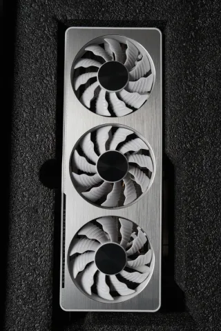 Tarjeta gráfica NVIDIA GeForce RTX3070 Eagle. - Diseño con tres ventiladores. - Acabado en gris. - Logo de Gigabyte en los ventiladores.