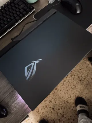 Portátil de alto rendimiento para gaming. - Diseño moderno en tonos negro y gris. - Logo distintivo de ROG en la tapa. Portatil gaming ASUS ROG Strix G15 en color negro con detalles multicolor. - Pantalla de 15.6 pulgadas. - Teclado retroiluminado RGB. - Gráficos NVIDIA GeForce RTX. - Procesador AMD Ryzen. - Conectividad Wi-Fi 6. -Ram 32gb -almacenamiento 512gb