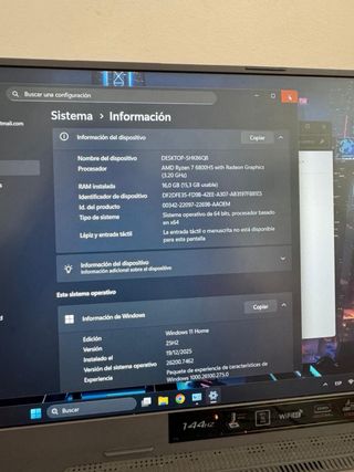 Vendo portátil HP en excelente estado, ideal para gaming. Tiene 2 años de uso, sin golpes ni rayas, con cargador original, y se entrega junto a una base de refrigeración, teclado y raton inalámbrico y un antivirus Norton de 1 año. 🔧 Especificaciones: Procesador: AMD Ryzen 7 7840HS Gráfica: NVIDIA GeForce RTX 4060 (8 GB GDDR6 dedicada) Memoria RAM: 16 GB DDR5 5600 MHz (2×8 GB) Almacenamiento: SSD NVMe Gen4 1 TB Pantalla: 16,1″ Full HD (1920×1080) 144 Hz, IPS, antirreflejos Conectividad: WiFi 6E, Bluetooth 5.3, Ethernet RJ-45, USB-C (DisplayPort 1.4a), HDMI 2. Bateria al 90% Windows 11 Home Solo entrega en mano Alcalá de Henares