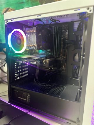 Se vende PC gaming muy cuidado, siempre limpio y sin overclock, con componentes de gama alta pensados para jugar en 1080p ULTRA y 1440p ALTO sin problema. Especificaciones: • CPU: AMD Ryzen 7 5800X (8 núcleos / 16 hilos) • GPU: NVIDIA RTX 3060 12GB • RAM: 32GB DDR4 3200MHz (4×8GB Kingston) • SSD: 2TB NVMe Kingston (arranques en segundos, espacio de sobra) • Placa base: MSI B450M-Pro • Fuente: Mars Gaming 650W (instalada hace 1 año) • Caja: Tempest Shade RGB blanca con cristal templado • Disipador: Cooler Master Hyper H412R Rendimiento real: Juegos e-sports 120-200fps,Juegos AAA 60-100fps alto/ultra,Perfecto para streaming/multitarea