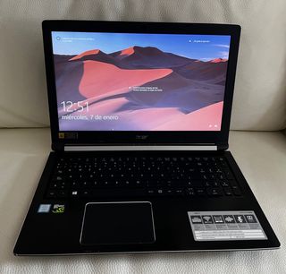 Modelo A715-71G-589W, de alto rendimiento en muy buen estado. Incorpora procesador Intel Core i5-7300HQ a 2,5 GHz, con Turbo Boost hasta 3,5 GHz, y tarjeta gráfica dedicada NVIDIA GeForce GTX 1050 con 2 GB de memoria GDDR5 para tareas exigentes y juegos ocasionales. Cuenta con 8 GB de memoria DDR4, disco duro de 1000 GB (1 TB), conexión Wi‑Fi 802.11ac con tecnología MIMO para una red inalámbrica más rápida y estable, y sistema de audio mejorado con Acer TrueHarmony, micrófono digital dual y Dolby Audio Premium para una experiencia multimedia envolvente. Muy poco uso, esta genial. Con su caja original incluida.