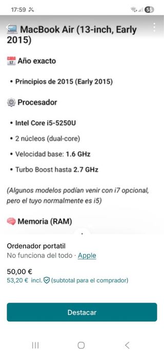 • De media, comprar Ordenador Apple en Wallapop es un 44% más barato que comprar este tipo de producto nuevo
