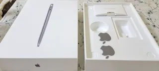 Caja original para portátil MacBook Air. - Diseño blanco minimalista. - Incluye compartimentos interiores para accesorios. - Ilustración del portátil en la tapa.