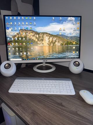 🖥️ PC completo listo para usar + monitor 27" (Windows + Office incluidos) Vendo ordenador de sobremesa en perfecto estado, comprado en 2021 y usado siempre con cuidado. Todo funciona al 100 %, limpio por dentro y listo para enchufar y usar (Windows 10 Pro y Office 2019 activados). Ideal para teletrabajo, estudios, ofimática, diseño básico o multimedia. Características principales: 💡 Procesador: AMD Ryzen 3 3200G (4 núcleos, gráfica integrada Vega 8) 🧠 Memoria RAM: 8 GB Kingston HyperX ⚡ Disco SSD NVMe 500 GB (muy rápido) 🔌 Placa base: Asus Prime B450M-K II 🔋 Fuente: Thermaltake TR2 S 500W 80 Plus