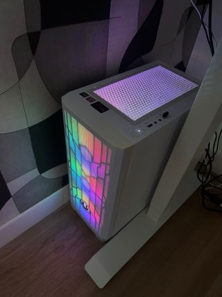 Torre de ordenador sobremesa hecho a medida en Pc Componentes con un diseño moderno y llamativo. Ideal para gaming. - Carcasa blanca con detalles en verde. - Iluminación LED integrada. - SSD 500 gb - Ryzen 5 3600, RTX 3060, 32 GB RAM DDR4, placa base Asus tuf B-450-plus. Fuente de alimentación corsair golden full modular 750W. Funciona perfectamente. Lo vendo por cambio a un modelo superior.