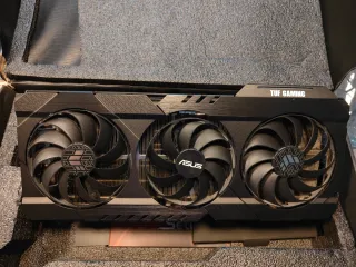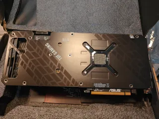 Tarjeta gráfica Asus TUF Gaming. - Modelo RX 6800. - Diseño con tres ventiladores. - Acabado en negro. Bajo el precio respecto a otras iguales porque la caja está en mal estado y tiene un ventilador de otra gráfica que funciona pero no es para esta gráfica por lo que es funcional pero lo suyo sería comprar los ventiladores nuevos para esta gráfica.