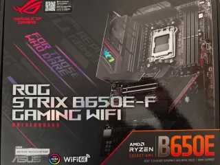 Placa base ASUS ROG STRIX B650E-F GAMING WIFI. - Soporte para AMD Ryzen 5000 Desktop. - Compatible con WiFi 6E. - Preparada para PCIe 5.0 (Gráficos y NVMe). - Soporte DDR5. Completamente nueva, entrega en mano o envío previo acuerdo.