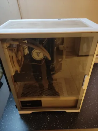 CPU: Intel Core i7-8700K (6 núcleos / 12 hilos, turbo hasta ~4.7 GHz), Placa base: MSI Z370 Gaming Plus, GPU: MSI GeForce GTX 1070 Ti 8 GB GDDR5, Memoria: 32 GB DDR4 (2×16 GB), Almacenamiento: NVMe 1 TB + SSD SATA 240 GB + HDD 2 TB, Refrigeración líquida (modelo ASUS LC240 ROG), Caja Nfortec Perseus V2 Alpha Edition con buen flujo de aire, Fuente: Thermaltake 700W (RGB) Le doy un “8/10” —el metacrilato de la caja tiene rasguños. Cambios de pasta térmica y refrigeración líquida en 2022, componentes sin fallos. Sistema operativo WIN10. Fortnite, Valorant, CS2 → muy altos fps Cyberpunk 2077, RDR2 (media-alta).