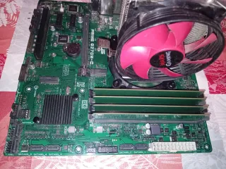 Se vende combo constituido por una placa base ASUS PRIME Q270M-C micro ATX con procesador Intel Core i7 6700 con disipador tacens mars gaming MCPU117 CPU cooler y 16GB de memoria RAM DDR4 a 2400mhz. Funciona perfectamente todo, puedo adjuntar videos de prueba de funcionamiento, se recomienda cambiar la pasta térmica de cara al verano ya que ya tiene un par de años y este verano pasado en juegos exigentes se calentaba la cpu en exceso ya.