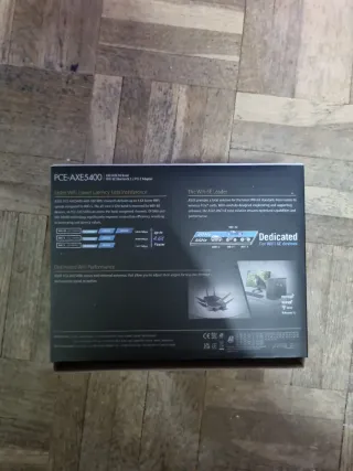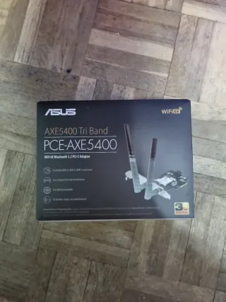 Tarjeta de red ASUS PCE-AXE5400 Tri Band. - WiFi 6E Bluetooth 5.2 PCI-E Adapter. - Incluye WiFi 6, WiFi 5, WiFi 4 y más. - Menos congestión e interferencia. - Ancho de banda de 160 MHz. - 4X mayor alcance, menos interferencia. No tiene la barra larga que se acopla a la caja, solo tiene la pequeña. No pesa nada, asi que no habria problema de sujeción.