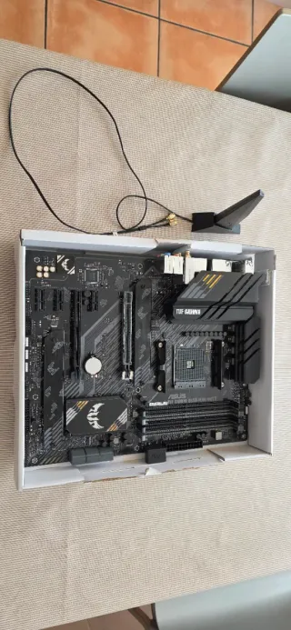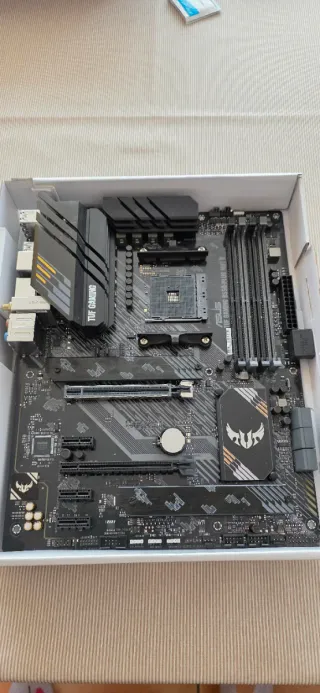 Placa base AM4 ASUS TUF Gaming B550 plus WIFI II En garantía hasta septiembre 2027 Buen estado. Pequeño defecto embellecedor metálico soporte GPU que no influye en el funcionamiento.