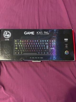 Teclado mecánico compacto TKL de la marca GAME, modelo KX3-TKL. Diseñado para gaming con iluminación RGB personalizable. - Diseño TKL (Tenkeyless) con 91 teclas. - Conexión para PC, Mac, PS5, PS4 y Xbox. - Iluminación RGB con varios modos y efectos. - Incluye cable y manual.