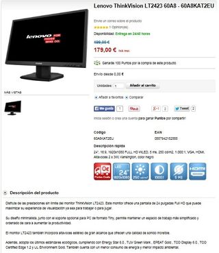 Monitor Lenovo de 24 pulgadas con altavoces integrados. Diseño elegante y funcional. - Pantalla de 24 pulgadas. - Altavoces integrados. - HDMI - Se envía en su embalage original - Si lo compras en Pack con uno de los 2 PC marca HP de mi perfil 20€ de descuento y además ratón inalámbrico Microsoft azul o Logitech verde de regalo.