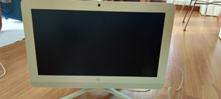 Ordenador all in one HP blanco de sobremesa . Funciona bien , ideal para niños que comienzan a hacer uso .