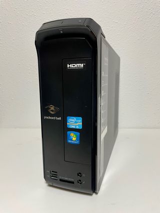 Vendo ordenador Packard Bell sin disco duro. Está en buen estado de funcionamiento, tiene algunas patillas del embellecedor frontal rotas y un pequeño roce como se puede apreciar en la ultima foto, pero no afecta al funcionamiento es meramente estetico. Caracteristicas : - Procesador : Intel core i5-2320 CPU @3.00GHz - 4GB de RAM - Lector DVD - Conexiones: HDMI, USB, VGA, entre otros. Precio correspondiente al equipo en funcionamiento, SIN DISCO DURO y con 4GB de RAM.