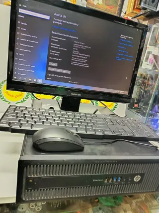 Ordenador completo HP Elite Desck 800, Buen estado general, recién hecho mantenimiento y limpieza, procesador intel i5 4690T, Ram 8gb, disco hdd 500gb, Windows 10, *funcionamiento fluido, incorpora 10 puertos USB 2.0 y 3.0, monitor panorámico 19" teclado, ratón, WiFi, varias salidas de audio y micrófono.