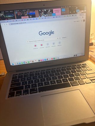 Vendo MacBook Air de 13 pulgadas (Modelo 2017 - A1466) en muy buen estado. Es el ordenador ideal para estudiar, teletrabajar o ver series. Al ser el modelo 2017, todavía tiene el teclado "bueno" (el que no falla) y todos los puertos (USB, tarjetas SD), por lo que no necesitas adaptadores. Especificaciones técnicas: Procesador: Intel Core i5 a 1,8 GHz. Memoria RAM: 8 GB (va muy fluido). Almacenamiento: 128 GB SSD. Gráficos: Intel HD Graphics 6000. Teclado: Original en español (con la letra Ñ).