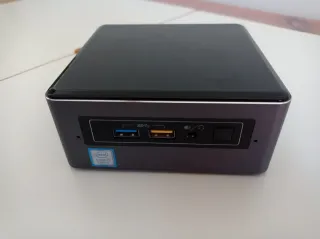 Se vende un MiniPC para uso en Home Theater u ofimática, sin ventiladores y completamente silencioso. Toda la caja de acero es un gran disipador de calor del ordenador. En su caja original, con antenas para Wifi y un alimentador de corriente. Las especificaciones son: - Procesador Intel i7 -6600U a 2.60 GHz - 16 GB RAM - Disco duro Samsung SSD de 470 Gb - Gráficos integrados Intel HD - 4x puertos USB 3.0+ 1x puerto USB 2.0 - Lector de tarjeta SD - Conexión de red Ethernet 1000/100/10 Mbps - Conectores de DisplayPort y HDMI - Doble antena Wifi - Bluetooth Con soporte para sujección en vertical. En muy buen estado de conservación.
