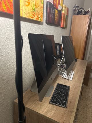 iMac en muy buen estado y funciona perfectamente. Tiene instalado macOS Ventura y va fluido para tareas diarias como estudiar, trabajar, navegar por internet, ver series o usar programas de oficina. Pantalla grande y de gran calidad, ideal para trabajar cómodamente o para uso en casa. El ordenador está bien cuidado y siempre se ha utilizado en escritorio. Incluye el iMac y cable de alimentación. Lo vendo porque no lo uso y me ocupa mucho espacio. Precio negociable.