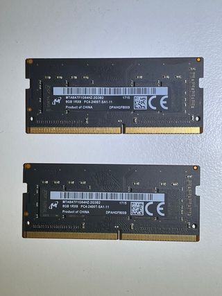 Memoria RAM DDR4 de 2x8GB, para iMac y portatiles. - Capacidad total: 16GB (2 módulos de 8GB cada uno). - Tipo: DDR4. - Velocidad: PC4-2400T. - Formato: SODIMM (para portátiles y algunos iMacs).