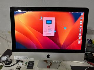 Ordenador Imac de 21,5 pulgadas de finales del año 2012. 2,7Gh Intel Core i5 de 4 núcleos. 16GB 1600MHz DDR3. Disco duro SSD 1TB nuevo. Ventura 13.6.3. Se incluye cable de corriente. No se incluye caja original, teclado, ni ratón.
