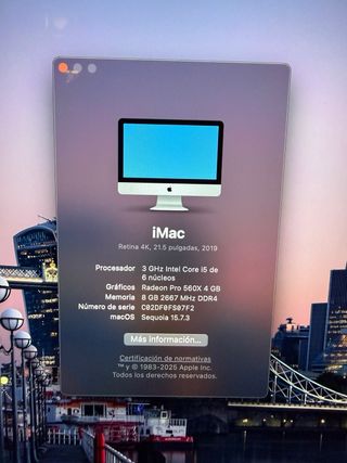 Mac 21,5 pulgadas 2019 Memoria 16 GB Versión : Sequoia 15.7.2