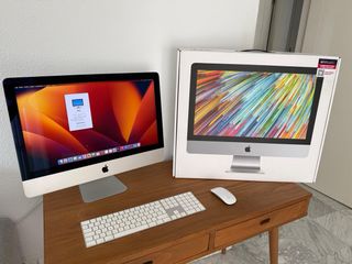 Vendo iMac de 21,5 pulgadas, modelo de 2019, en estupendas condiciones. Es una pantalla Retina 4K, tiene una esquina picada como se puede ver en las imagenes pero no afecta a su funcionamiento para nada, se trata de las bandas negras de la pantalla. Tengo un imac modelo 2017 con la pantalla oled ligeramente quemada, si no me negocias el precio te llevas los dos. - Teclado original y raton no original del ordenador pero comprado original de Apple - Procesador Intel Core i5 de 3 GHz de 6 núcleos - 8 GB de memoria DDR4 a 2667 MHz - Gráficos Radeon Pro 560X de 4 GB - 1 TB de almacenamiento