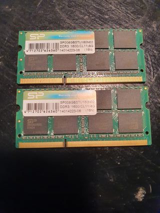 Se venden dos módulos de memoria RAM DDR3 de 8GB cada uno, para un total de 16GB. - Capacidad total: 16GB (2x 8GB) - Tipo de memoria: DDR3 - Velocidad: 1600MHz - Latencia: CL11 - Marca: Silicon Power Silicon Power - DDR3 PORTATIL 8 GB. 1600 HZ. CL11 1.35V SILICON POWER