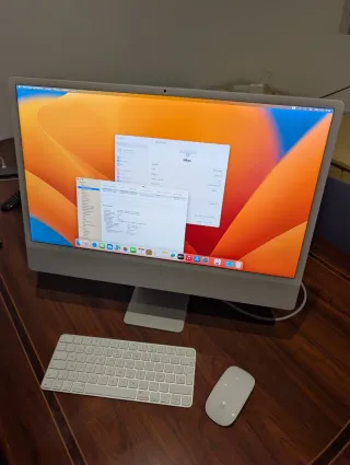 Se vende un iMac de 24 pulgadas en color rosa (valorado en 1305€), con su caja original en perfecto estado. Caracteristicas del ordenador : - CPU 8 núcleos - GPU 7 núcleos - Neural engin de 16 núcleos - 8 GB memoria unificada - 512 GB almacenamiento SSD - 2 puertos USB 4 - Ratón magic mouse - Magic keyboard (teclado) con touch ID y teclado alfanumerico en Español