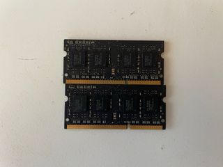 Dos módulos de memoria RAM Elpida de 4GB cada uno. - Capacidad total: 8GB (2x 4GB). - Tipo de memoria: DDR3 SODIMM. - Velocidad: PC3L-12800S (1600MHz). - Fabricante: Elpida. - Origen: Taiwán.