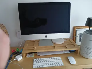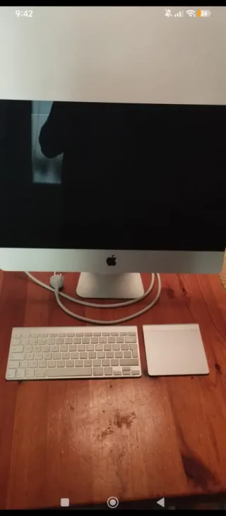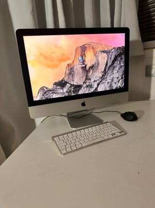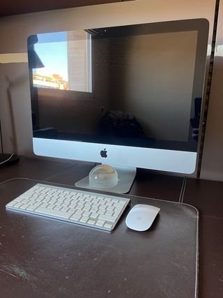 Ordenador de sobremesa iMac de 21 pulgadas. Teclado por cable y ratón inalámbrico originales. Tiene unos 10 años pero ha tenido un uso poco intenso,esporádico. El aspecto es bueno más allá del desgaste mínimo habitual, y funciona bastant bien. Para sacarle su potencial necesitaría una actualización de software que yo ya no quiero hacer por falta de uso. Lo vendo con la caja original. Procesador Intel Core i5 2'7Ghz 8GB RAM DDR3 Disco duro 1TB