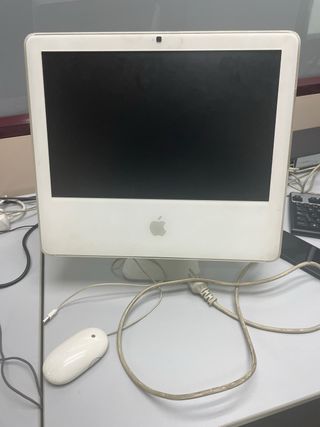 Ordenador de sobremesa iMac de 17 pulgadas. - Diseño clásico en color blanco. - Incluye ratón y cables de conexión.