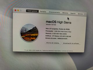 IMac 2009 20 pulgadas con sistema operativo macOS Catalina como nuevo. Raton y teclado incluidos. Algunas teclas del teclado no funcionan pero el ordenador puede usarse correctamente. Precio Negociable Madrid, Getafe