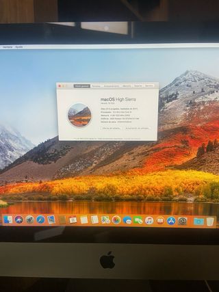 Ordenador de sobremesa iMac de 21,5 pulgadas. - Pantalla de alta resolución. - Diseño elegante y moderno. - Procesador 2,7 Ghz Intel Core i5 de 4 núcleos - Gráficos Intel Iris Pro 1536 MB - Memoria RAM aumentada a 16 Gb MHz DDR3 - Disco duro mejorado: 1 Tb ssd - MacOS actualizado a Sequoia 15.7.2 - Teclado a pilas y ratón segunda generación recargable. - Entrego multiplicador usb acoplado. - Pequeña tara en el lateral frontal (ver foto) -Se entrega en su caja original