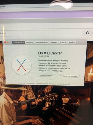 Ordenador iMac de 21,5 pulgadas con procesador Intel Core i5. Proviene de estar en exposición. Prácticamente sin uso. Ha sido verificado por una empresa especializada de Sevilla. Incluyo de regalo una pantalla BenQ full HD de 19 pulgadas - Procesador: 2,3 GHz Intel Core i5 de doble núcleo. - Gráficos: Intel Iris Plus Graphics 640. - Memoria RAM: 16 GB DDR4 a 2133 MHz. - Almacenamiento: Macintosh HD con 250,69 GB. - Sistema Operativo: macOS Ventura versión 13.7.8.
