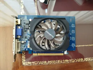 Tarjeta gráfica Gigabyte GeForce GT 730. - Ventilador para refrigeración. - Conexiones: HDMI, DVI, VGA. - 2 GB VRAM - Perfecta para fuentes de bajo consumo (máximo de 38W) - No requiere conectores de alimentación externos - Posibilidad de hacer lote con caja, placa y fuente Lenovo (también subida en mi perfil)