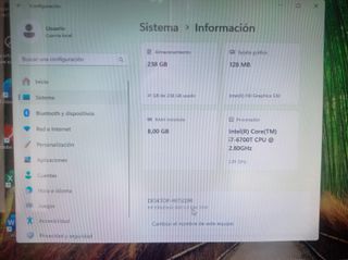 1. Monitor Samsung LED 18.5" • Modelo: S19D300NY • Características: Resolución HD (1366 x 768), panel LED, entrada VGA. • Estado de mercado: Es un monitor básico y veterano (fabricado en 2014). 2. Mini PC HP ProDesk 600 G2 DM • Procesador: Intel Pentium G4400T @ 2.90GHz. • Memoria RAM: 8 GB DDR4. • Almacenamiento: SSD Kingston de 224 GB (240GB nominales). • Gráficos: Intel HD Graphics 510. • Sistema: Windows 10 (basado en la captura "Acerca de").