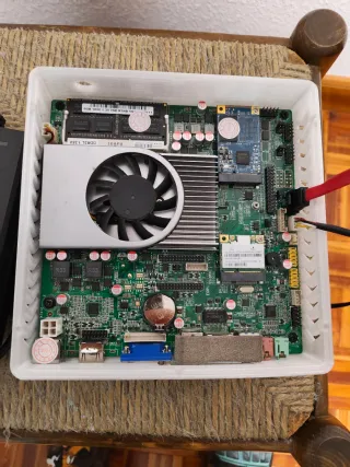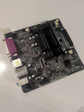 Procesador: AMD Athlon 5150 APU (4 núcleos a 1.6 GHz). Placa Base: ASRock AM1B-ITX (SATA III 6Gb/s y USB 3.0). Memoria RAM: 16 GB DDR3 1600 MHz (2x8GB). Ideal para proyectos de bajo consumo como Mini-servidor, NAS, Home Server o Plex. Conjunto muy eficiente (TDP de solo 25W) y con 16GB de RAM, lo que permite ejecutar múltiples servicios (Docker, Home Assistant, Samba) con total fluidez. La placa es formato Mini-ITX, perfecta para cajas pequeñas y compactas. Todo funciona perfectamente. HDMI, VGA, DVI 2 x USB 3 y 2 x USB 2 externos 1 x USB 3 y 2 x USB 2 internos 4 x SATA