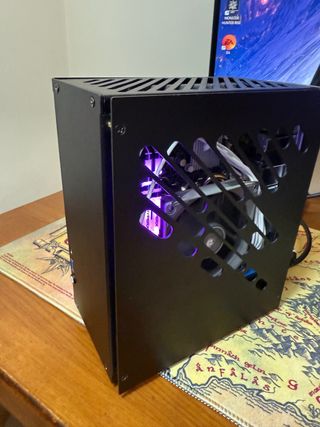 GPU: NVIDIA RTX 4090 Founders Edition (24GB GDDR6X) CPU: AMD Ryzen 7 7800X3D (8 núcleos, 16 hilos, 5.0GHz) MOBO: ASUS ROG Strix B650E-I Gaming WiFi (Mini-ITX, PCIe 5.0, WiFi 6E) RAM: Corsair Vengeance DDR5 96GB (2x48GB) 6000MHz CL30 (10μs latencia) Almacenamiento: Crucial T700 4TB Gen5 NVMe (12.400 MB/s) PSU: Corsair SF750 (750W, 80+ Platinum, SFX) Caja: FormD T1 V2.1 (aluminio, formato SFF 9.95L) Otros : 2x Phanteks T30-120, 1x Thermalright AXP90-X47 Sin overclock, custom-built con la frame FormD T1 v2.1 (flat-packed), y con un diseño SFF, quiero compradores que entienden el valor del PC, no para alguien que lo quiere re-vender.