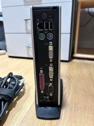 Mini PC HP con un diseño compacto Funciona perfectamente con Windows XP instalado 🔌 Incluye fuente de alimentación original • CPU ~1 GHz • 1 GB RAM • Disco duro ~140 GB • Puertos: USB, PS/2, DVI, paralelo, serie (ideal para proyectos retro / industrial) • Formato ultra-slim — ocupa poco espacio