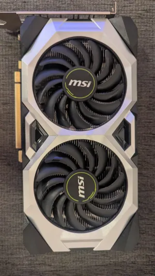 Tarjeta gráfica MSI RTX 2070 Ventus con 8GB de memoria. - Diseño de doble ventilador. - Acabado plateado y negro. - Usada para gaming, NO minería. - Entrego con la caja original